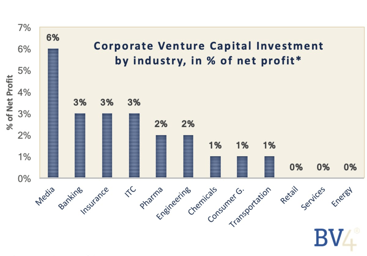 According to recent research by BV4, the level of Corporate investment in startups is depending on the industry.